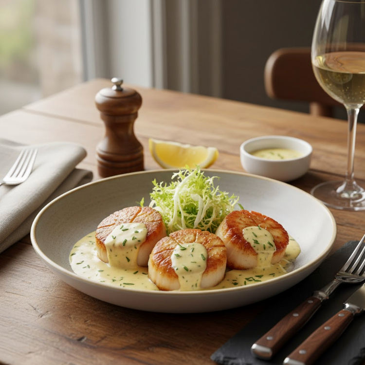- 베르네 소스의 우아함이 가리비의 섬세함을 강조