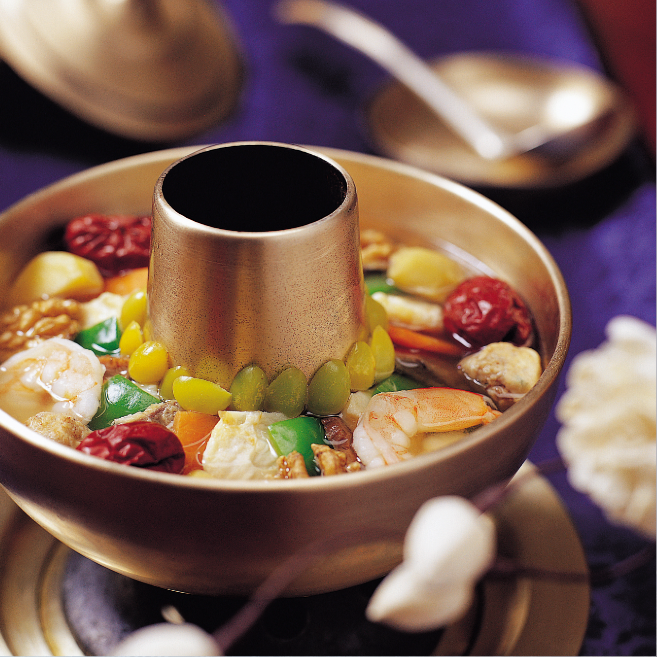 지금은 신선로라는 이름이 더 유명한데 이것은 원래 그릇의 이름이었습니다. 신선이 먹는 음식을 담는 화로 같은 그릇이라는 뜻으로 신선로라 불렀고 점차 음식 자체를 신선로라 부르게 되었습니다.