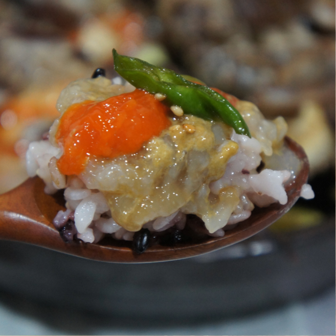 게딱지에 따뜻한 밥을 올립니다. 게 내장과 간장을 섞어 비벼먹습니다. 참기름 한 방울과 김가루를 추가하면 완벽합니다.