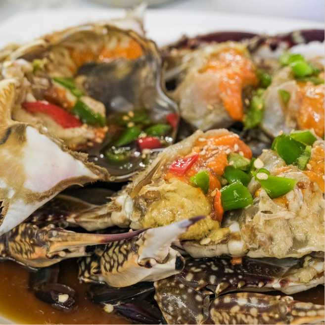암꽃게는 알이 가득 차 있어 고소하고 숫꽃게는 살에 탄력이 있어 씹는 맛이 좋습니다.