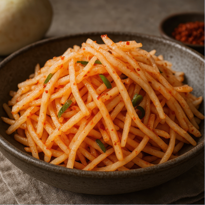 넷플릭스 흑백요리사2에서 신스틸러로 등극한 임성근 셰프의 무생채 레시피입니다. 윤주모와 팀을 이뤄 4라운드 팀 미션에서 68분 만에 완성해 심사위원들을 놀라게 했습니다.