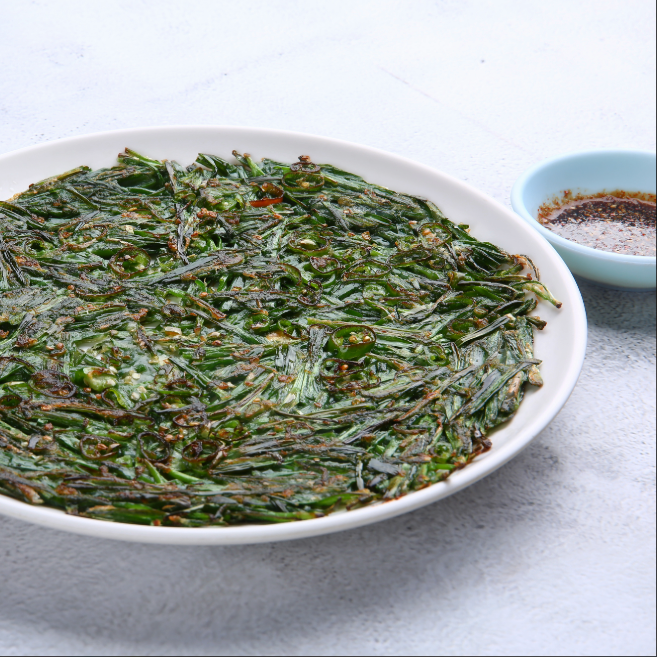 얇게 펴고 넉넉한 기름으로 바삭하게, 슈퍼푸드 부추로 건강까지 챙기는 한 끼이자 해물 김치 치즈 등 다양한 변주가 가능.