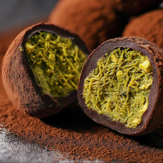 두바이 초콜릿은 진한 초콜릿 안에 피스타치오 크림과 카다이프(얇은 면 과자)가 들어가 쫀득하고 바삭한 식감이 특징입니다.
