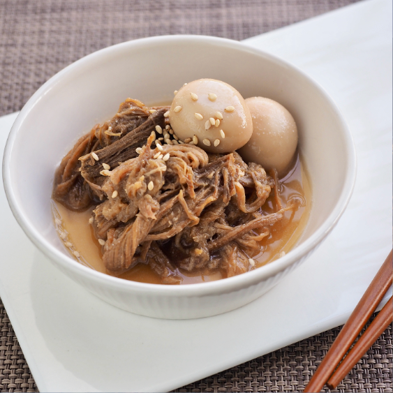 소고기가 익으면 물과 간장 양념을 넣고 메추리알과 함께 졸입니다. 시간과 노력을 줄이면서도 맛과 영양은 그대로입니다.
